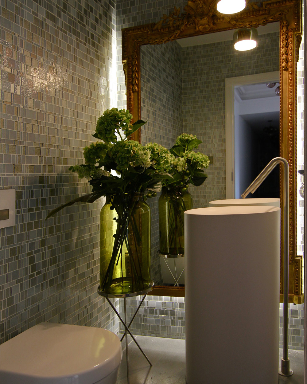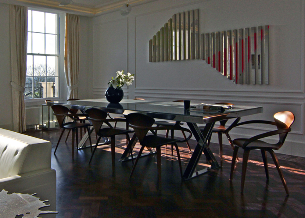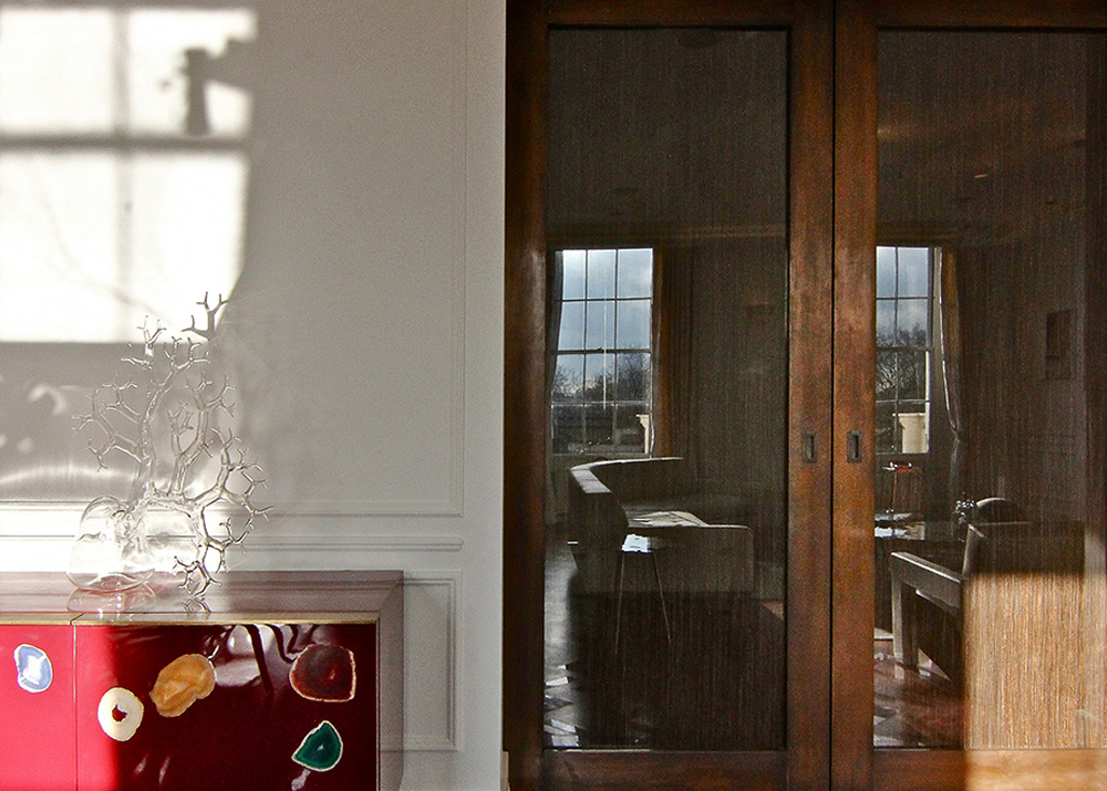 The challenge with this 3000 square foot Grade II listed apartment with views of the park, was to create four bedrooms, all with ensuite bathrooms whilst complying with heritage requirements. This was achieved by designing the bathrooms as pods within the bedrooms so that the original full form of the rooms could still be appreciated. The bespoke oak parquet flooring in the wonderfully spacious reception room and entrance hall was designed to include marble pieces. The result is a truly stunning home with modern design woven into a beautiful original 19th century villa.