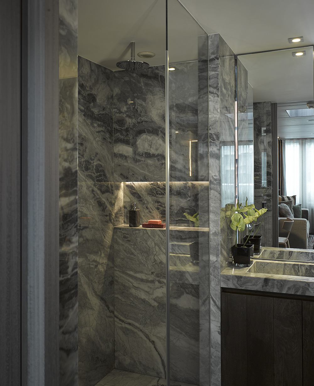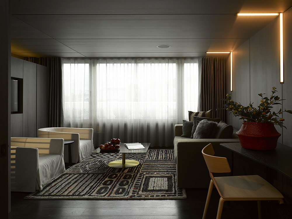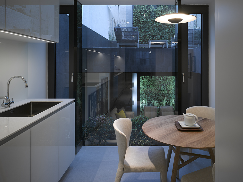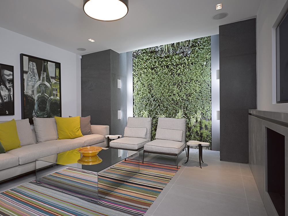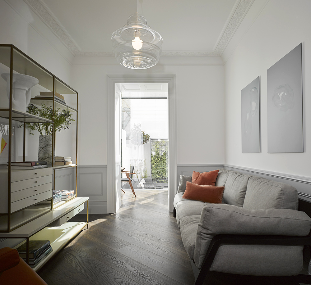 A living wall rises through a glass extension to create a beautiful green backdrop linking across several floors. The original rooms of the house have been sympathetically refurbished to retain the character and charm of the period and mix seamlessly with the new build elements.