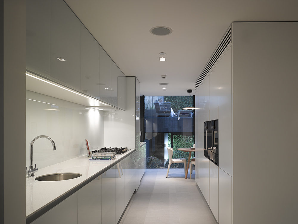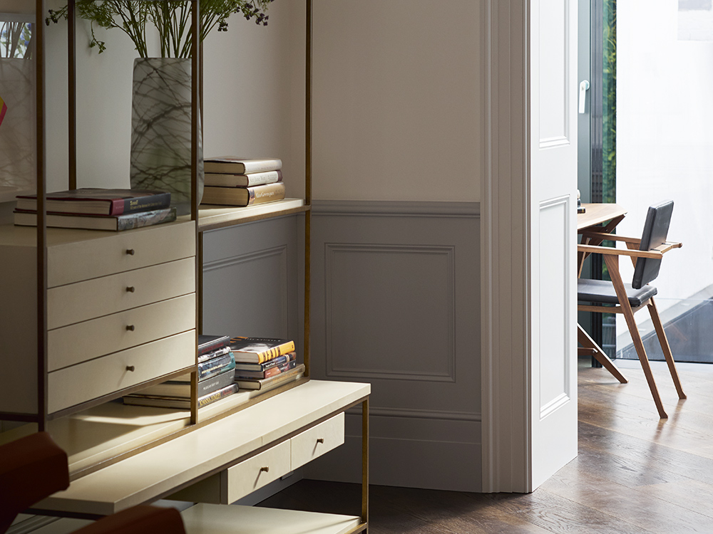Montpelier Street is a Grade II listed home in Knightsbridge which centres around a stunning and innovative new rear glass extension visually connecting three floors and the garden. The newly excavated basement accommodates a naturally light family room with views through to the kitchen.