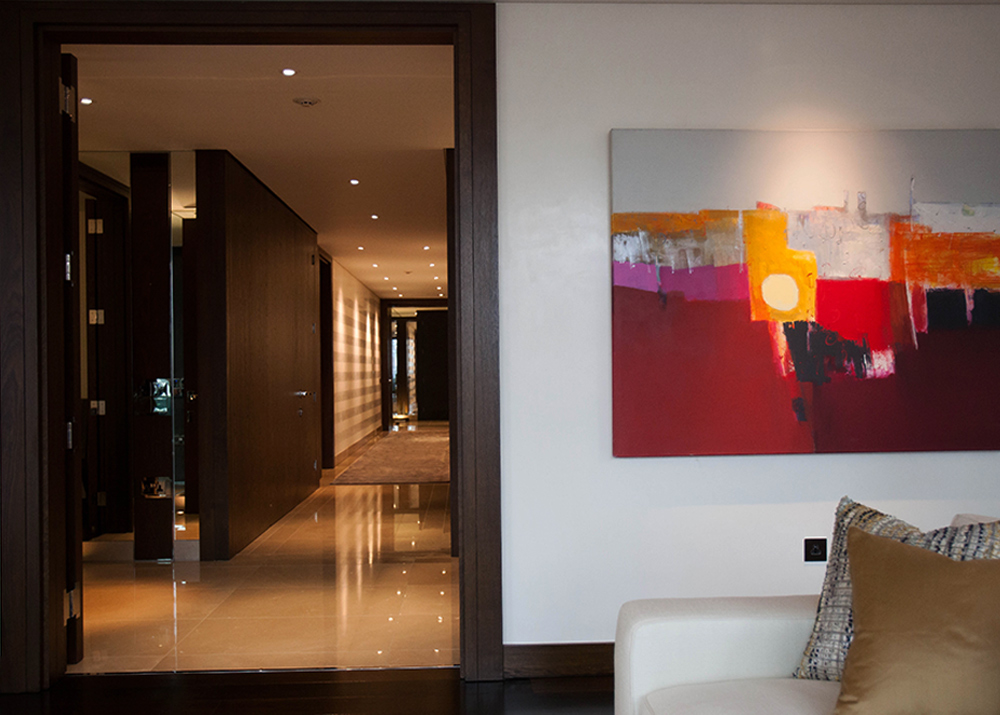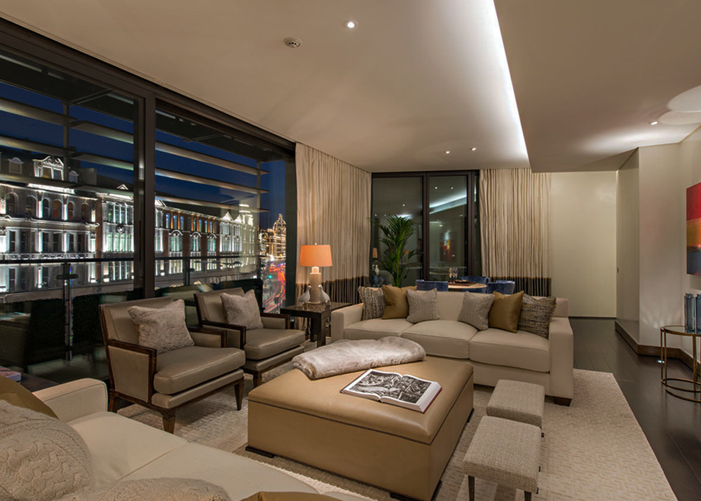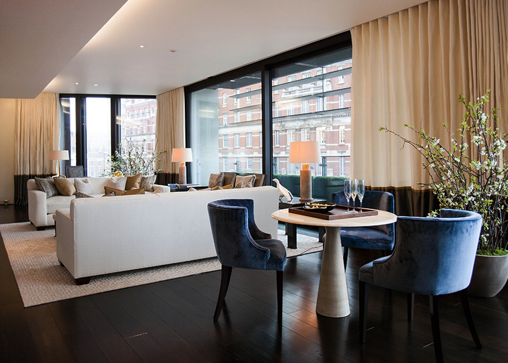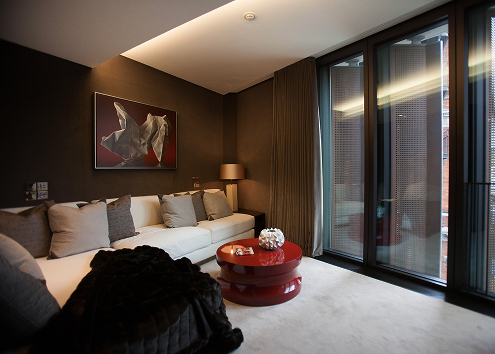 This prestigious apartment in the world famous One Hyde Park luxury development has enviable views over Harrods in the heart of Knightsbridge. The apartment itself is beautifully conceived and needed little in the way of remodelling. Instead, the focus was on furnishing the rooms to the highest standard to create a luxuriously stylish London pied-à-terre. Sumptuous fabrics and furnishings, intimate lighting and bold artworks contribute to make this one of the most desirable apartments in central London.